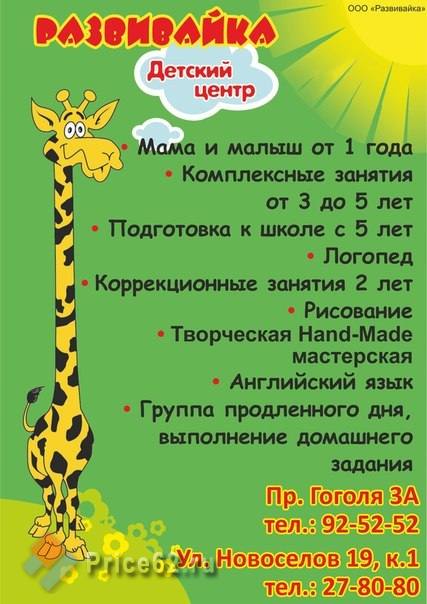 Детский центр раннего развития "Развивайка". Адреса и телефоны в Рязани.